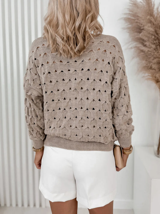Textured Knit Round Neck Long Sleeve Sweater