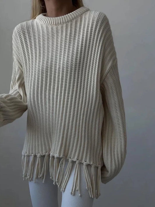 Fringe Round Neck Long Sleeve Sweater